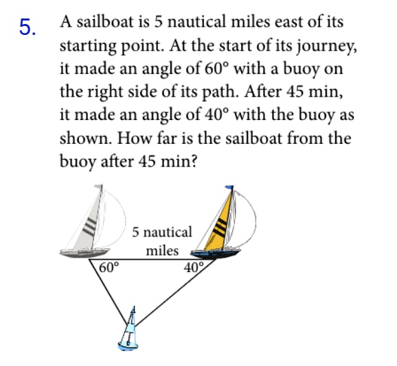 Solved A Sailboat Is 5 Nautical Miles East Of Its Starting Point The Sailboat S Path Is Shown How Far Is The Sailboat From The Starting Point